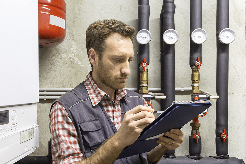 katsaus-putkistoon_freepik_plumber-writing-clipboard-while-inspecting-heating-system